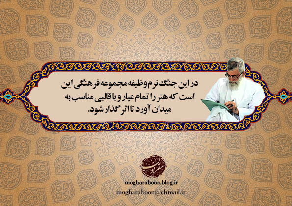 هنر، زبان رسایی برای همه موضوعات و بخصوص موضوعات پیچیدهای مثل انقلاب است. هرچه امثال من درباره انقلاب بگوییم، نخواهیم توانست آن حقیقت عظیم را تشریح کنیم؛ مگر این که زبانِ هنر وارد میدان شود. زبانِ هنر است که میتواند حوادث عظیم را تبیین و تشریح کند و ذهنها را روشن نماید.۱۳۷۷/۱۱/۱۳